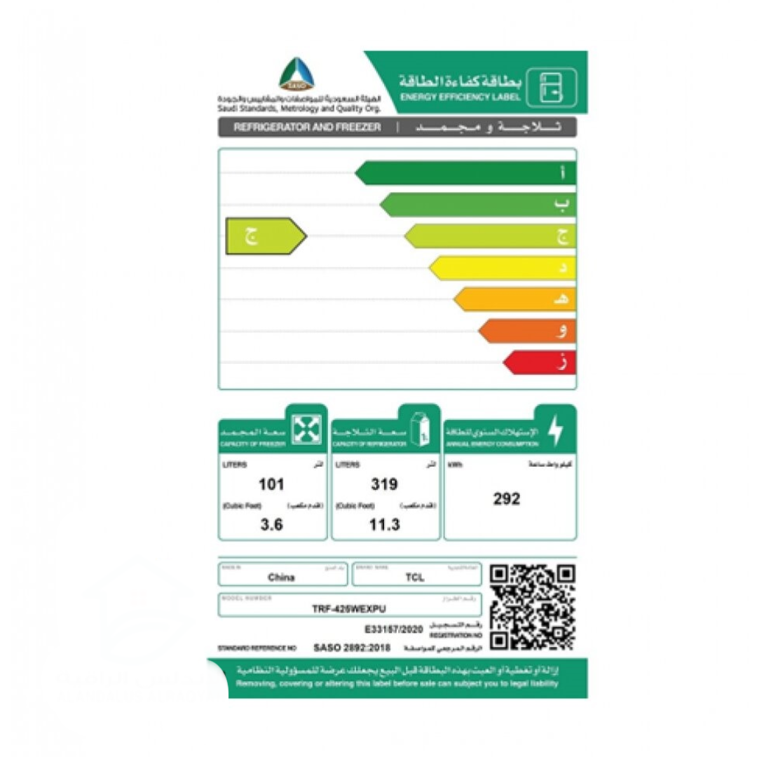 رمز المنتج: TRT-P425YB1XS التصنيفات: الثلاجات و الفريزرات, ثلاجة بابين العلامة التجارية: تي سي ال