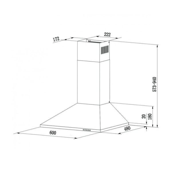 مواصفات شفاط هرمي للمطبخ ماستر جاز 60 سم 3 سرعات ايطالي :