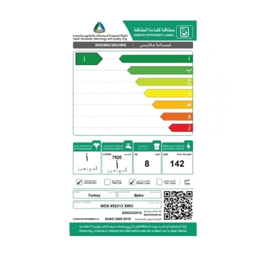 رمز المنتج: WDX852313XW0 التصنيفات: غسالات, تعبئة أمامية العلامة التجارية: بيكو