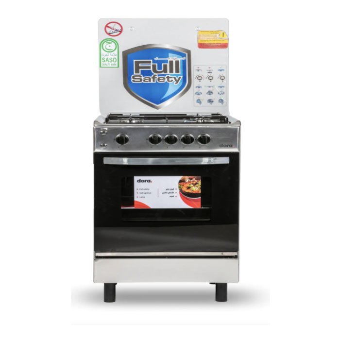 مواصفات فرن غاز دورا 4 عيون 55*55 امان كامل ستيل :
