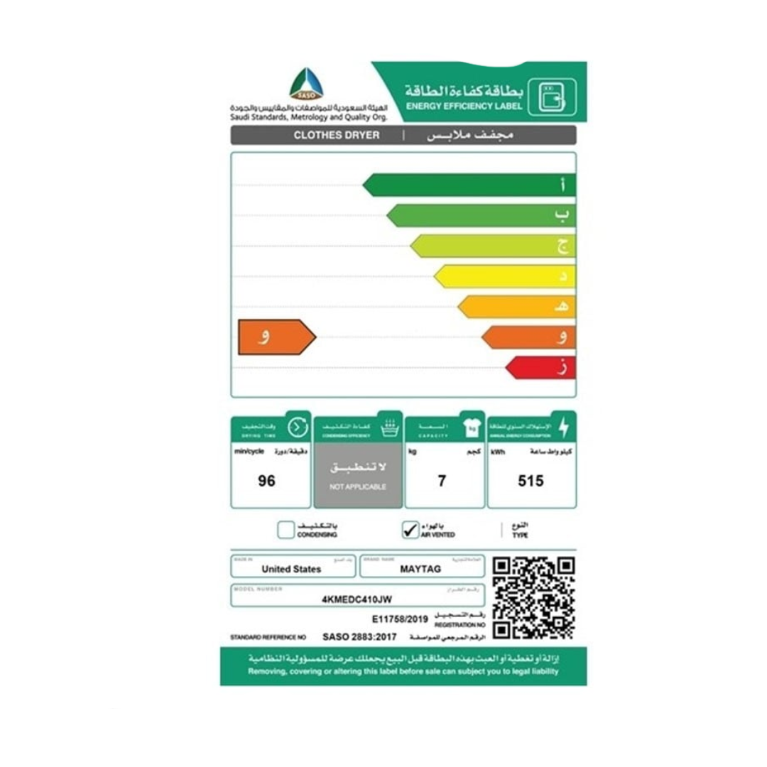 مواصفات مجفف ملابس ميتاج 7 كيلو تعبئة امامية – ابيض :
