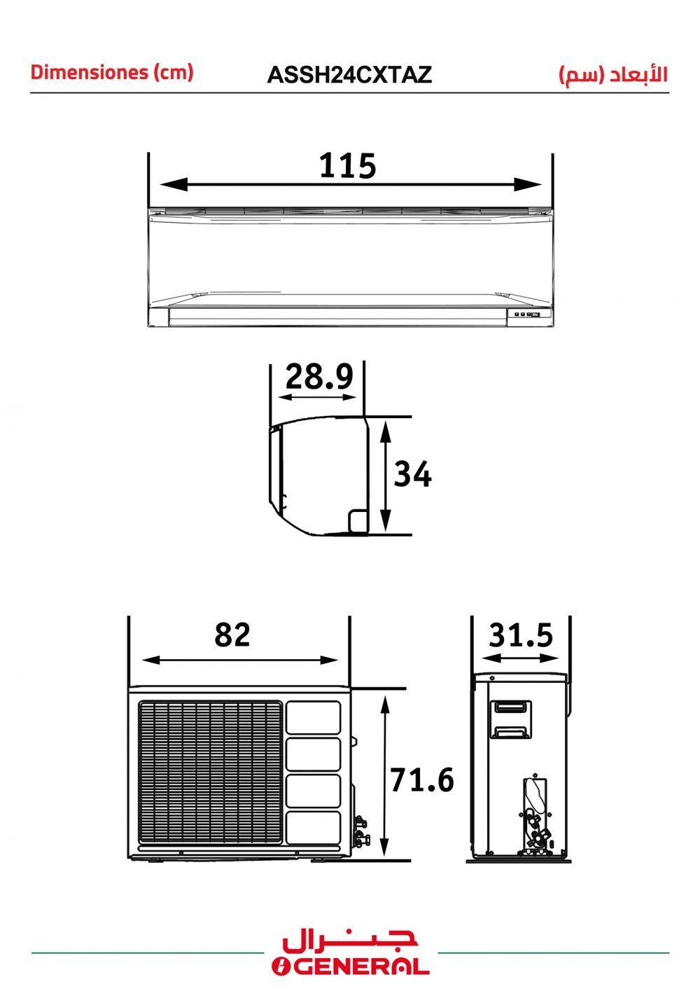 مواصفات مكيف اسبلت او جنرال 24000 وحدة انفرتر بارد :