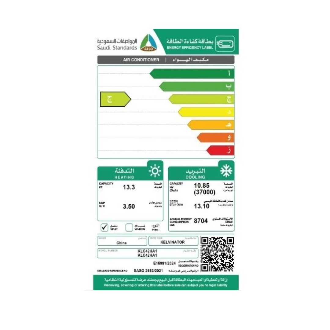 مواصفات مكيف كاسيت كلفنيتور 37000 وحدة انفرتر حار بارد :