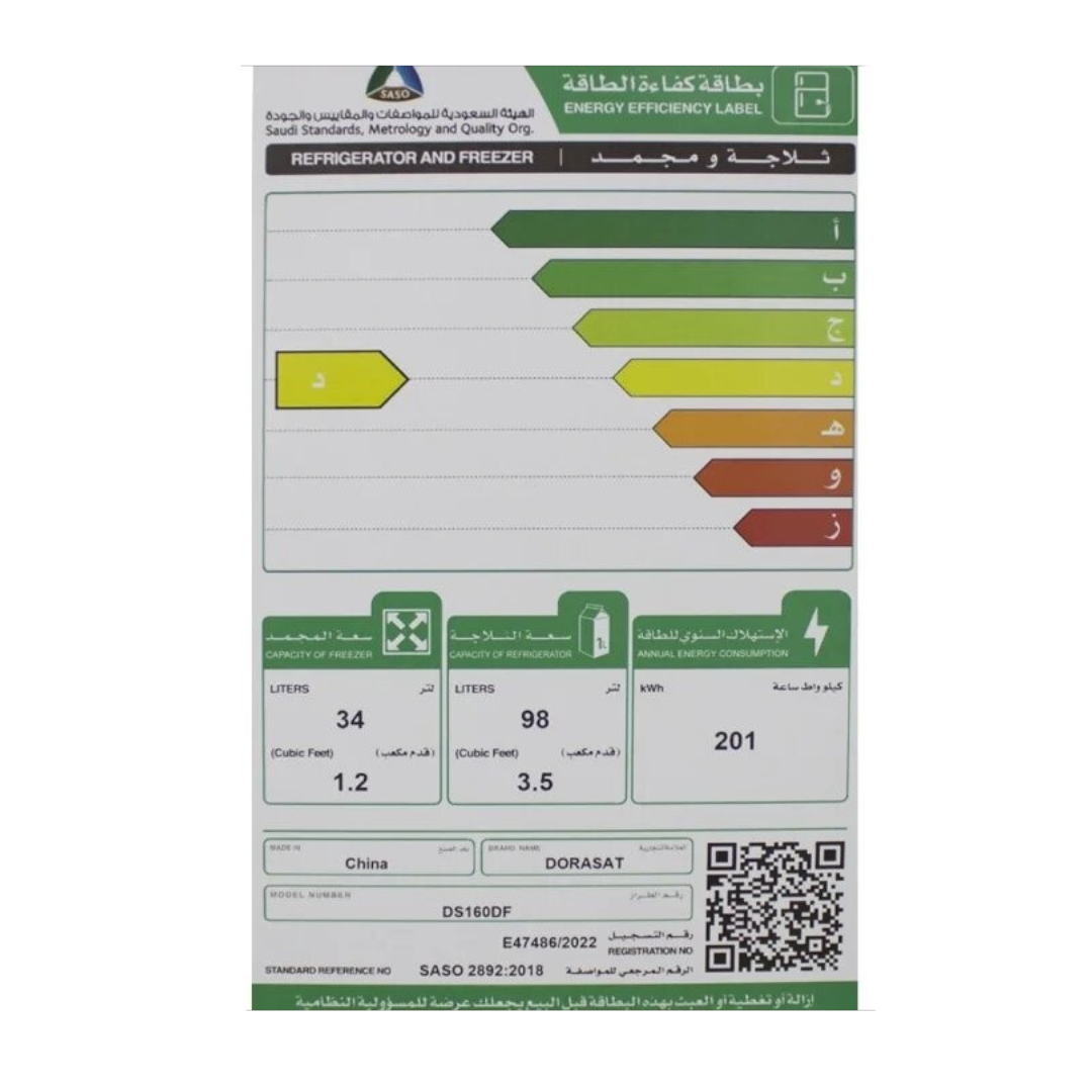 مواصفات ثلاجة 5 قدم بابين دورا سات ستيل :