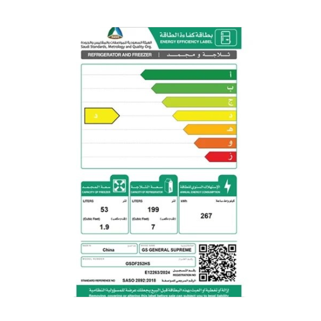 مواصفات ثلاجه 9 قدم بابين جنرال سوبريم نوفروست – ستيل :