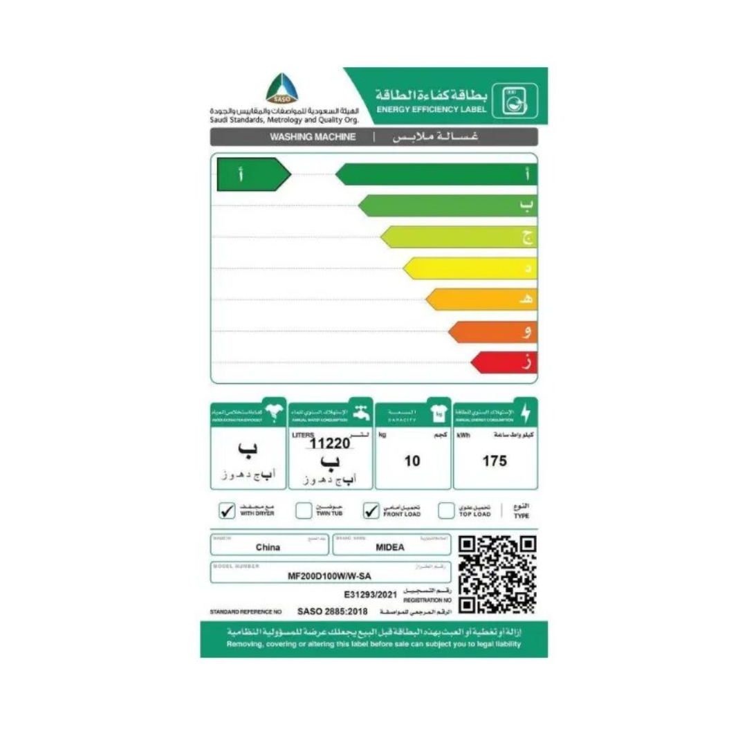 مواصفات غسالة أتوماتيك امامية ميديا 10 كيلو انفرتر – ابيض :