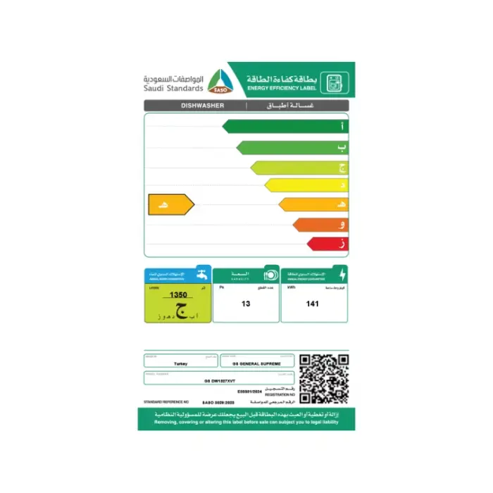 مواصفات غسالة صحون جنرال سوبريم 7 برامج 13 مكان – ستيل :