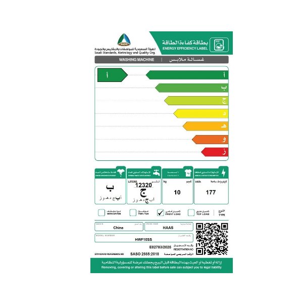 مواصفات غسالة فتحة امامية هاس 10 كيلو انفرتر – تيتانيوم :