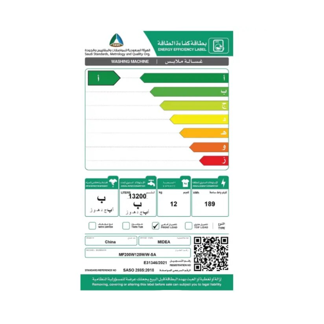 غسالة امامية ميديا 12 كيلو انفرتر واي فاي – أبيض