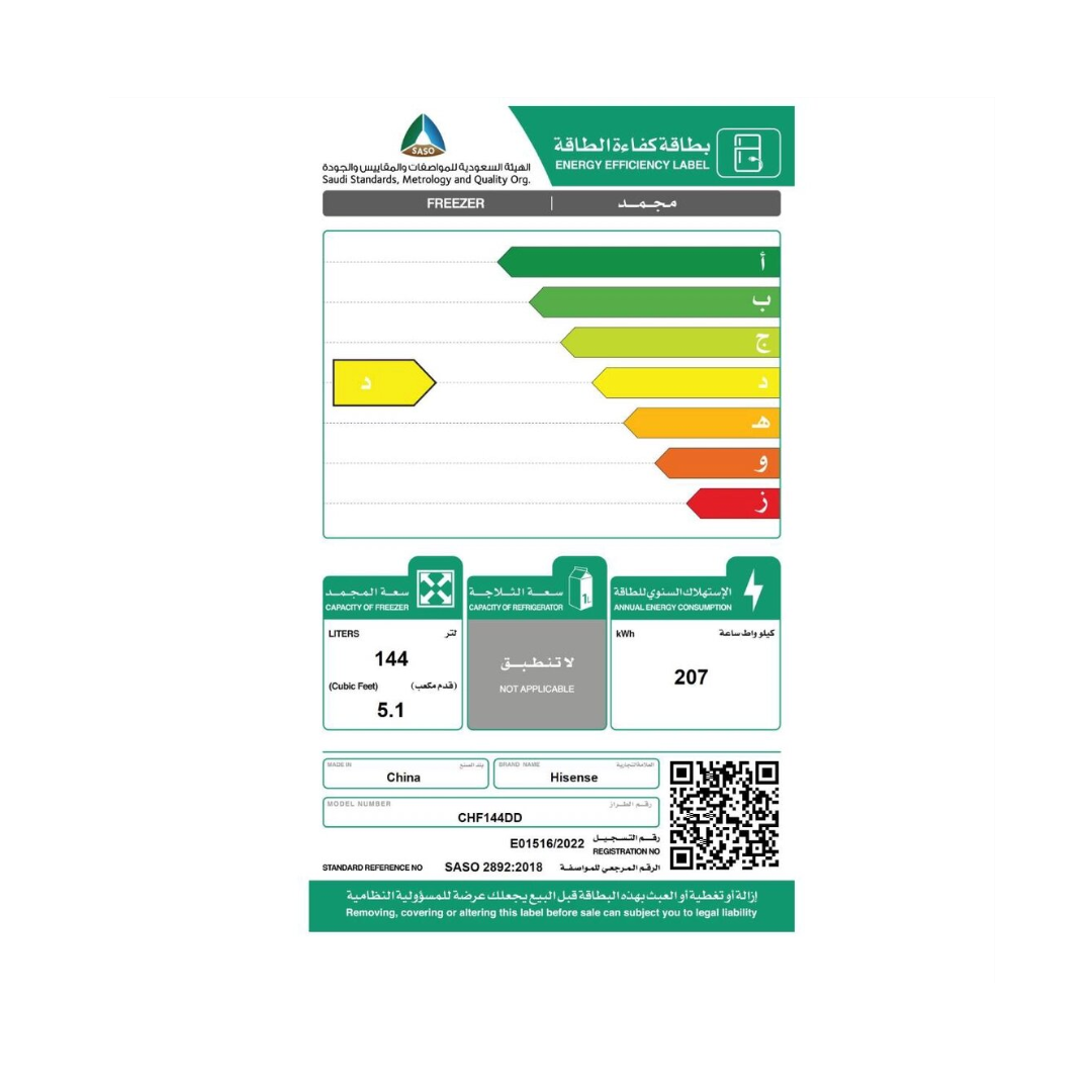 مواصفات فريزر أفقي هايسنس 5 قدم – أبيض :