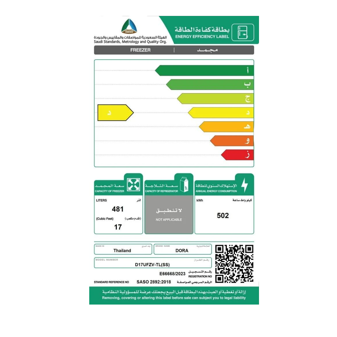مواصفات فريزر عمودي دورا 17 قدم – ستيل: