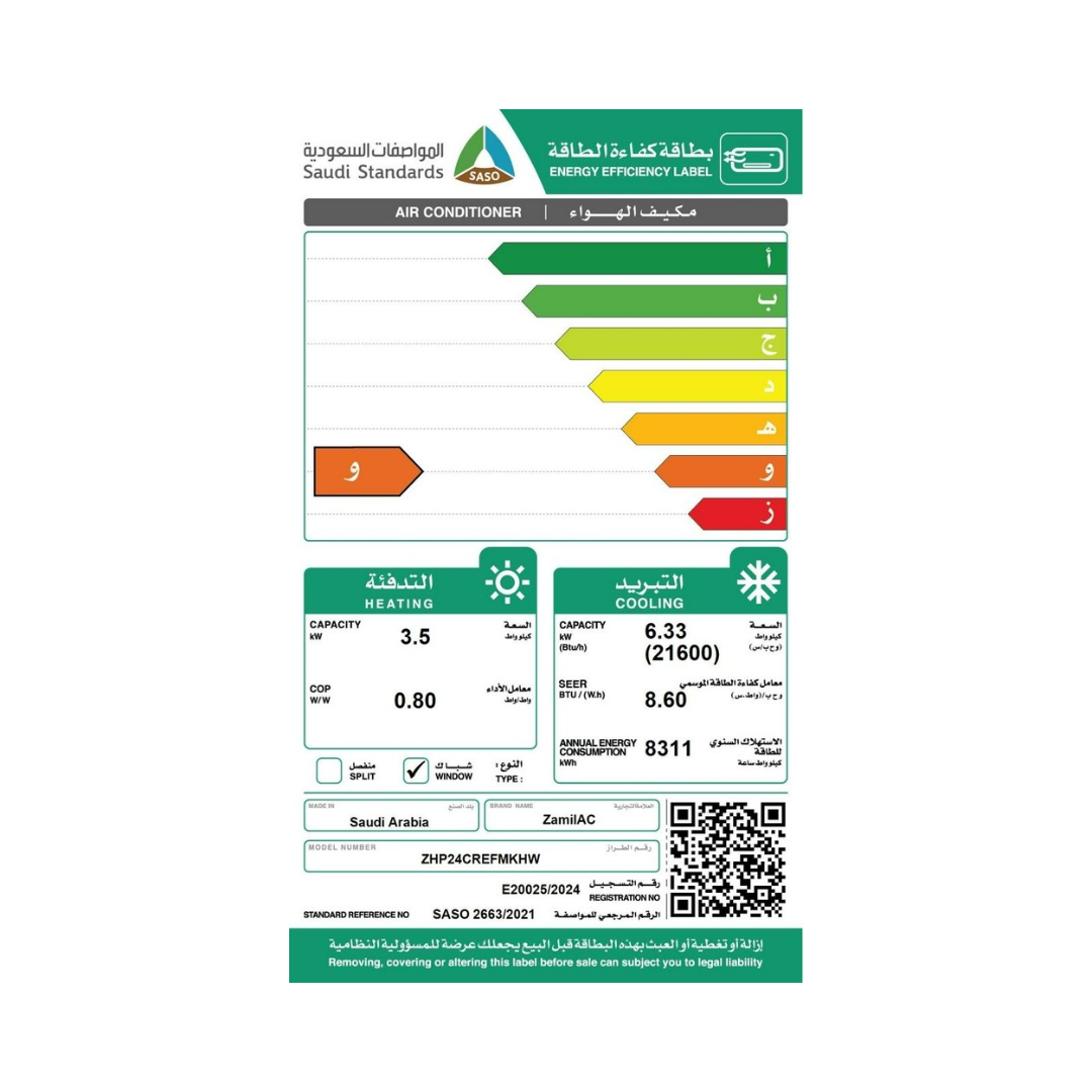 مواصفات مكيف شباك الزامل 21600 وحدة روتاري حار بارد :