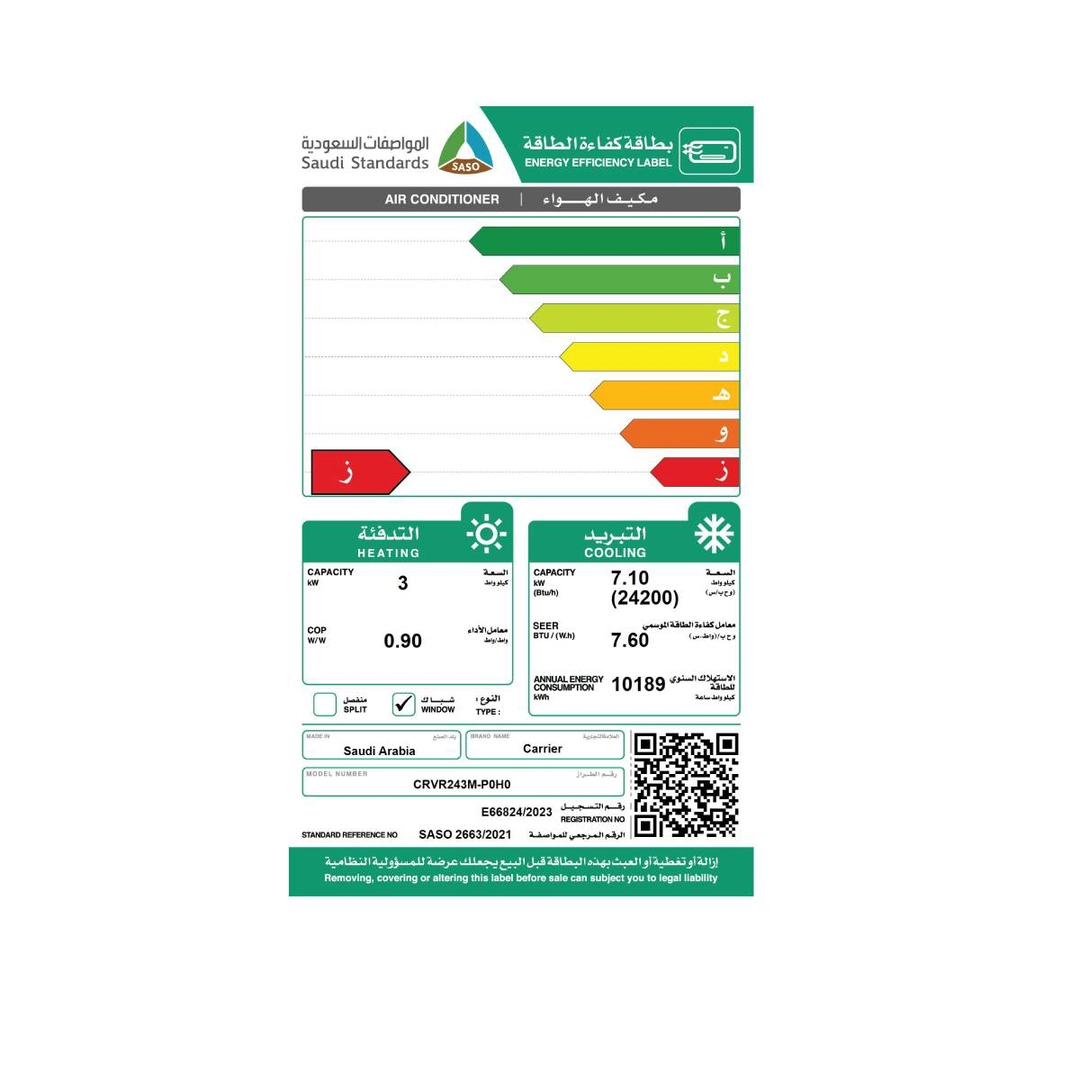 مواصفات مكيف شباك كارير 24200 وحدة روتاري حار – بارد :