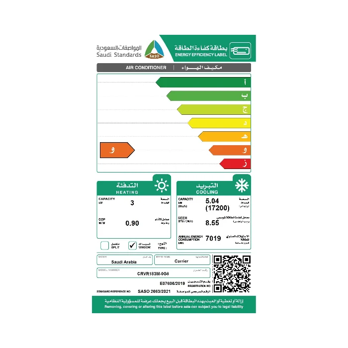 مواصفات مكيف 18 الف وحدة كارير شباك روتاري حار – بارد :